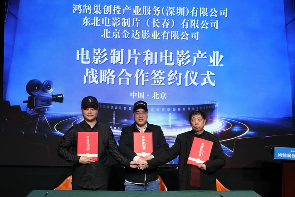 国际数字传媒港北京1月28日电 记者汪志民 1月27日下午,鸿鹄巢创投产业服务(深圳)有限公司、东北电影制片(长春)有限公司、北京金达影业有限公司三方在北京电影制作基地正式签署战略合作协议,宣告开启在电影制片及全产业链领域的全面紧密合作。此次三方结盟将整合各自资源优势,以AI技术应用为核心抓手,构建“铁三角”合作生态,共同深耕电影产业,为行业高质量发展注入新动能。