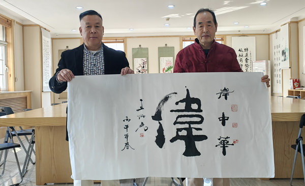 ![]() 书法家向大会赠送作品 ![]() 王秀堂和王炳尧