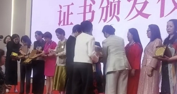![]() 唐伟与欧洲华人华侨妇女联合总会第十届理事会主席程玉芬为获奖者颁发牌匾和证书 ![]() 为向世界传播中华家文化工作者颁发形象大使牌匾